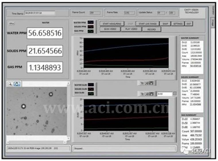 CANTY动态成像技术的可视型基本原理是将原油置于高强度光源和显微级的摄像机之间。摄像机拍下的图像通过以太网被传输到VCM(预装CantyVision分析软件)进行分析,对悬浮颗粒(水、基本沉积物、蜡或水合物等)进行单独测量,采集多种不同的参数,为用户提供颗粒的尺寸、形状和浓度等分析数据。